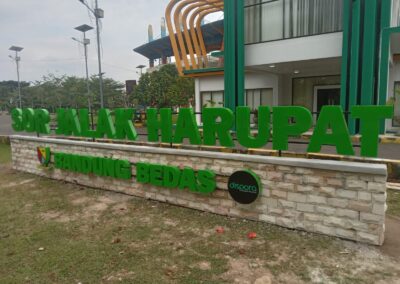 Bahan ini bisa dikombinasikan atau dipadukan dengan lampu yg membuat tampilannya semakin menarik. Berikut contoh-contoh foto huruf timbul bahan ini: