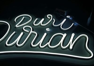 Kalo dulu populer dengan nama neonsign yg terbuat dari neon yg dibentuk tulisan, kini ada yg lebih simple menggunakan lampu led flexible yg mudah dibentuk mengikuti desain tulisan yg dibutuhkan. Hadir dengan beragam warna lampu dan harganya pun relatif lebih murah dibanding huruf timbul pada umumnya